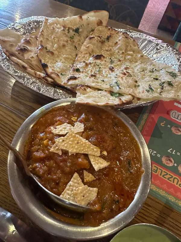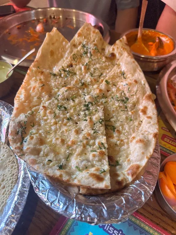 탄두리 치킨과 치킨 티카 마살라를 더욱 맛있게 즐기기 위해, 난도 두 종류를 주문했다. 버터난은 겉은 바삭하고 속은 쫄깃했으며, 버터의 풍미가 은은하게 느껴졌다. 갈릭난은 마늘의 향긋함이 더해져, 커리와 함께 먹으니 더욱 맛있었다.