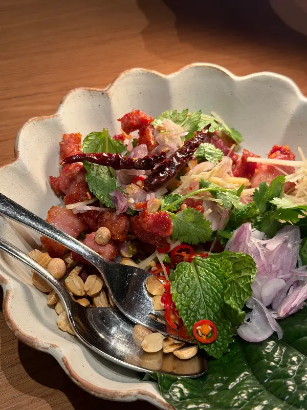 파파야 샐러드 또한 놓칠 수 없는 메뉴입니다. 아삭한 파파야와 새콤달콤한 소스가 어우러져 입맛을 돋우는 역할을 톡톡히 했습니다.