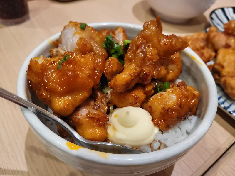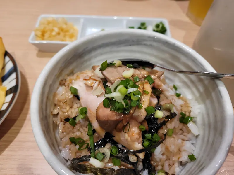 윤기가 자르르 흐르는 닭고기 차밥은 달콤 짭짤한 소스와 함께 밥 위에 얹어져 나옵니다. 부드러운 닭고기와 따뜻한 밥, 그리고 라멘 국물의 조화는 훌륭하며, 한 끼 식사로도 손색이 없습니다. 겉은 바삭하고 속은 촉촉한 가라아게는 라멘과 함께 먹으면 느끼함을 잡아주고, 입안을 즐겁게 해줍니다.
