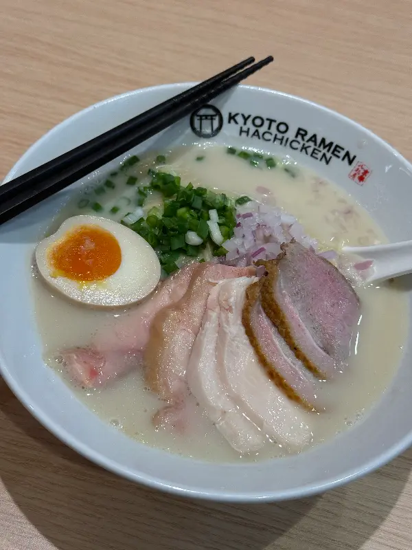교토 라멘 하치켄의 대표 메뉴는 단연 닭고기 육수를 베이스로 한 라멘입니다. 특히 파이탄 라멘은 진하고 깊은 닭뼈 육수의 풍미를 그대로 느낄 수 있는 메뉴로, 많은 이들의 입맛을 사로잡고 있습니다. 한 입 맛보는 순간, 입안 가득 퍼지는 진한 육수의 향은 마치 일본 현지의 라멘 맛집에 와있는 듯한 착각을 불러일으킵니다.