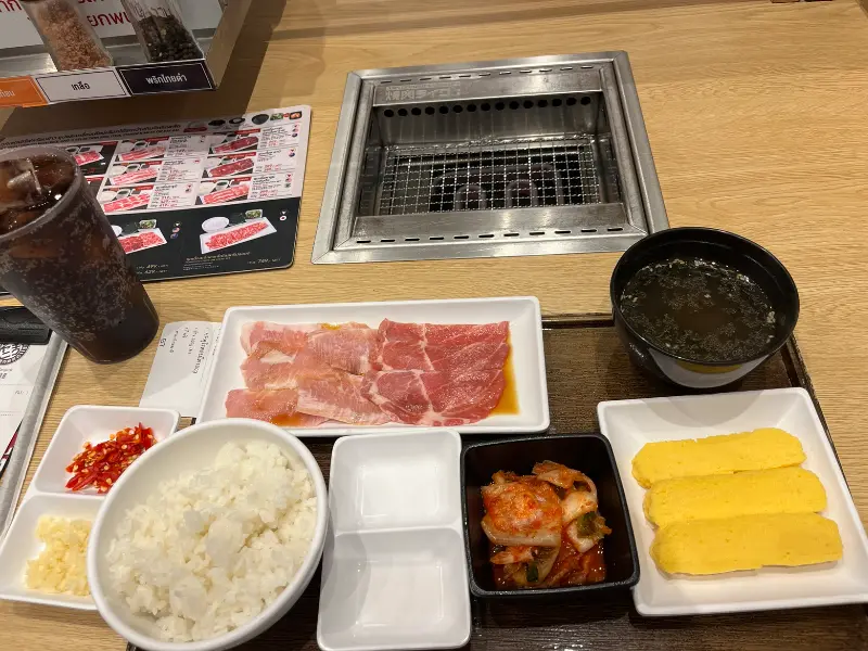 야키니쿠 라이크의 가장 큰 장점 중 하나는 합리적인 가격이다. 훌륭한 품질의 고기를 저렴한 가격에 즐길 수 있다는 점은 혼밥족에게 큰 매력으로 다가온다. 세금 포함 가격이라는 점도 마음에 든다. 229฿이라는 가격으로 맛있는 야키니쿠 세트를 즐길 수 있다니, 정말 가성비 최고의 선택이 아닐 수 없다.