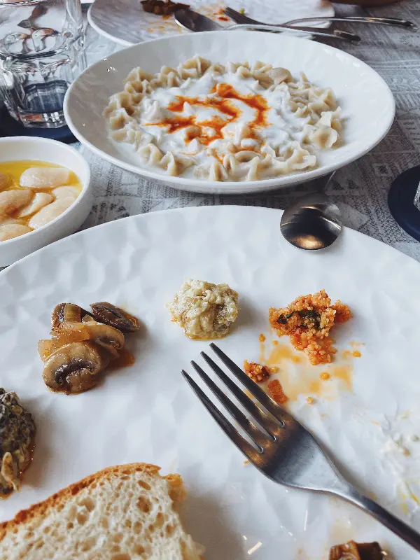조심스럽게 만티 하나를 입에 넣었다. 얇고 쫄깃한 만두피 안에는 촉촉한 고기 소가 가득 차 있었다. 입안에서 부드럽게 녹아내리는 만두피와 고소한 고기 소, 그리고 상큼한 소스가 환상적인 조화를 이루었다. “이것이 바로 터키의 맛이구나!” 나는 감탄하며 만티를 순식간에 해치웠다.