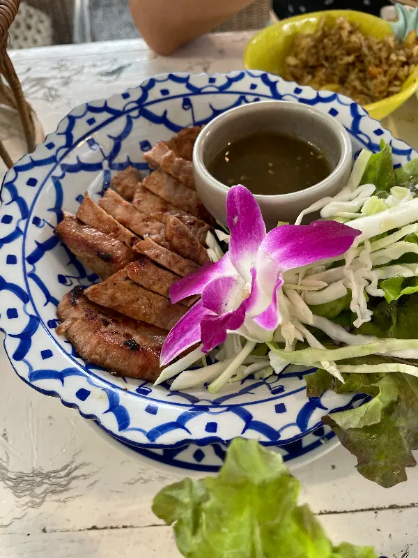 잠시 후, 테이블 위로 하나둘씩 음식이 차려지기 시작했다. 가장 먼저 눈에 들어온 것은 윤기가 좔좔 흐르는 꼬치구이였다. 곁들여 나온 땅콩 소스에 푹 찍어 한 입 베어 무니, 입안 가득 퍼지는 고소함과 은은한 불맛이 환상적인 조화를 이루었다. 신선한 야채와 함께 곁들이니, 느끼함은 전혀 느껴지지 않았다.