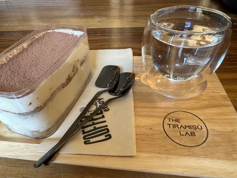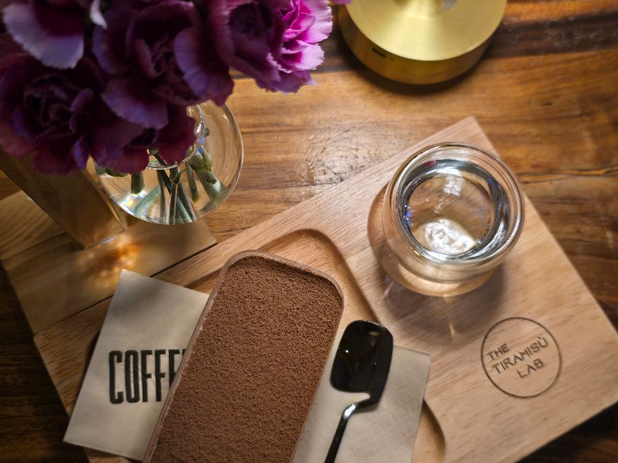 수쿰빗 소이 13에 자리한 ‘티라미수 랩(The Tiramisu Lab)’은 방콕 도심 속에서 잊을 수 없는 달콤함을 선사하는 보석 같은 맛집입니다. 문을 열고 들어서는 순간, 은은한 조명과 고풍스러운 와인 랙이 어우러진 아늑한 공간이 방문객을 따뜻하게 맞이합니다. 이곳은 단순한 디저트 가게를 넘어, 와인과 티라미수의 완벽한 조화를 경험할 수 있는 특별한 장소로, 많은 이들에게 “방콕 최고의 티라미수”라는 찬사를 받고 있습니다. 매장에 들어서면 코끝을 간질이는 커피와 럼의 향이 기대감을 증폭시키고, 겹겹이 쌓인 티라미수의 아름다운 자태는 눈을 즐겁게 합니다.