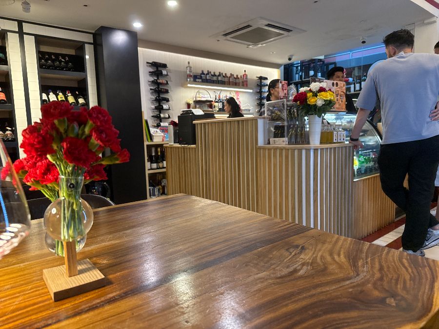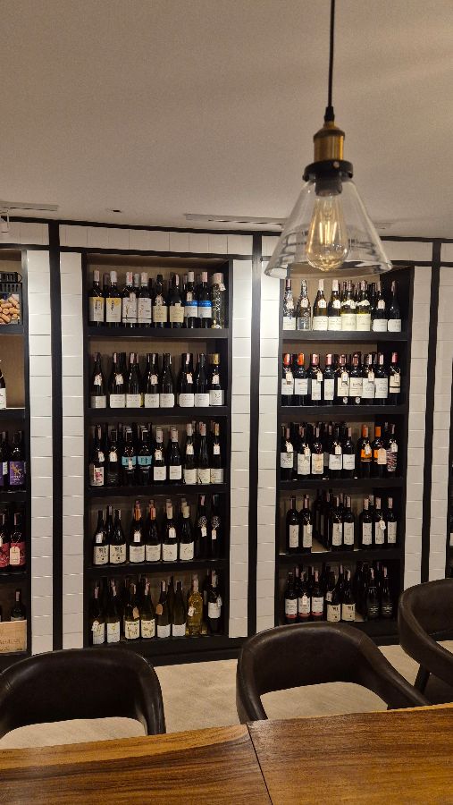 아늑한 실내 분위기 역시 티라미수 랩의 매력을 더합니다. 와인병이 가득 찬 선반들 사이로 은은하게 비추는 조명은 로맨틱하면서도 편안한 느낌을 줍니다. 길게 늘어진 펜던트 조명은 공간에 깊이감을 더하고, 따뜻한 나무 테이블은 아늑함을 선사합니다. 이곳은 디저트와 와인을 함께 즐기며 여유로운 시간을 보내기에 최적의 장소입니다. 수쿰빗 스위트 빌딩에는 2시간 주차 공간이 제공되어 편리하게 방문할 수 있다는 점 또한 큰 장점입니다.