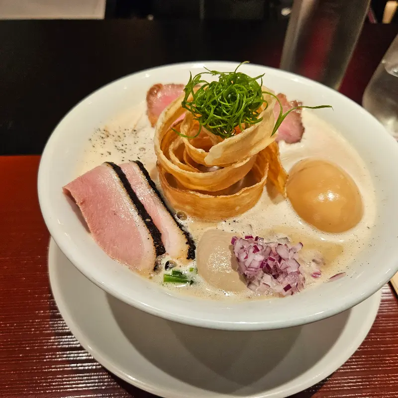 자리에 앉자마자 메뉴판을 정독했다. 가장 먼저 눈에 띈 것은 역시 대표 메뉴인 토리 파이탄 라멘. 다른 후기들을 보니 대부분 토리 파이탄을 추천하는 듯했다. 뽀얀 국물 위에 예술 작품처럼 토핑이 올려진 모습이 인상적이었다. 마치 섬세하게 디자인된 요리처럼 느껴졌다.