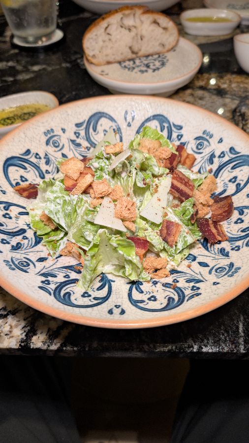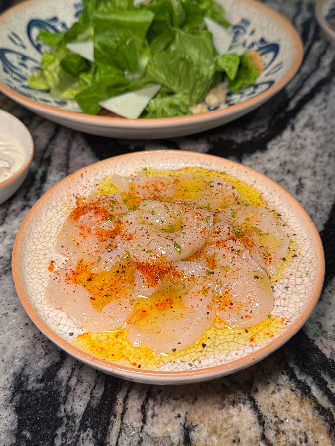 애피타이저는 미식의 여정을 더욱 풍성하게 만듭니다. ‘와규 타코’는 입안에서 사르르 녹는 와규의 부드러움과 신선한 채소의 조화가 돋보이는 메뉴로, 감각적인 플레이팅까지 더해져 눈과 입을 동시에 즐겁게 합니다. 상큼한 ‘시저 샐러드’는 신선한 채소와 바삭한 크루통, 그리고 풍미 깊은 드레싱이 어우러져 메인 요리를 맞이하기 위한 입맛을 돋우기에 완벽합니다. 특히 베이컨 조각과 치즈가 듬뿍 올라간 시저 샐러드는 그 자체로 훌륭한 요리입니다.