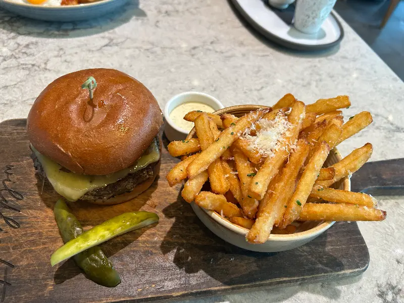 다음으로 주문한 메뉴는 와규 버거였습니다. 묵직한 무게감에서부터 느껴지는 푸짐함은 시각적으로도 만족감을 주었습니다. 한 입 크게 베어 무니, 육즙 가득한 와규 패티의 풍미가 입안 가득 퍼져 나갔습니다. 신선한 야채와 소스의 조화 또한 훌륭했습니다.