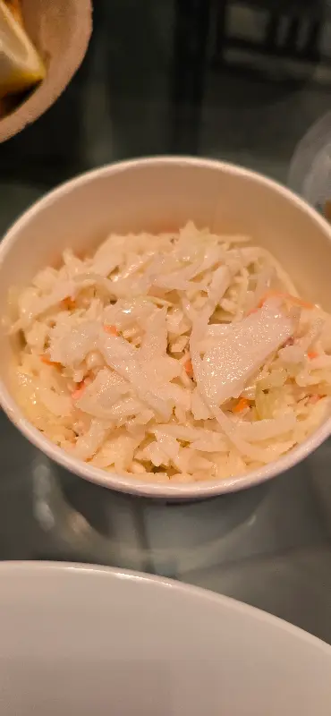 함께 제공되는 코울슬로 역시 신선하고 맛있습니다. 아삭아삭한 양배추와 당근, 그리고 상큼한 드레싱의 조화는, 느끼할 수 있는 튀김 요리의 맛을 깔끔하게 잡아줍니다.