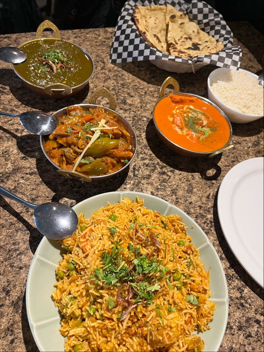 특히, 비건을 위한 메뉴 선택지도 훌륭했습니다. 신선한 버섯이 듬뿍 들어간 버섯 커리와 시금치와 두부가 어우러진 팔락 토푸(Palak Tofu)는 깊고 진한 맛으로 채식주의자들의 마음까지 사로잡습니다. 비건 로티와 함께 맛보니, 재료 본연의 맛이 살아있는 동시에 향신료의 조화가 완벽하게 어우러져 “지금까지 먹어본 인도 요리 중 가장 맛있었다”는 극찬이 절로 나옵니다. 심지어 요청하면 비건 비리야니까지 정성껏 조리해주는 세심함은 방문객들에게 깊은 감동을 선사합니다. 고슬고슬한 밥알에 다채로운 채소와 향신료가 조화롭게 어우러진 비건 비리야니는 그 자체로 훌륭한 한 끼 식사입니다.