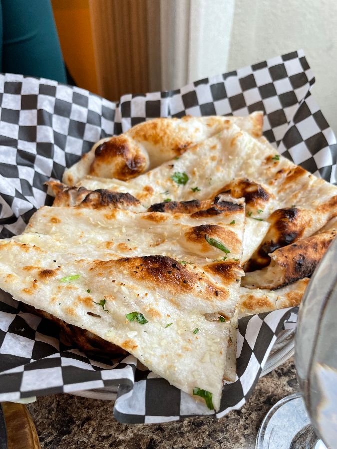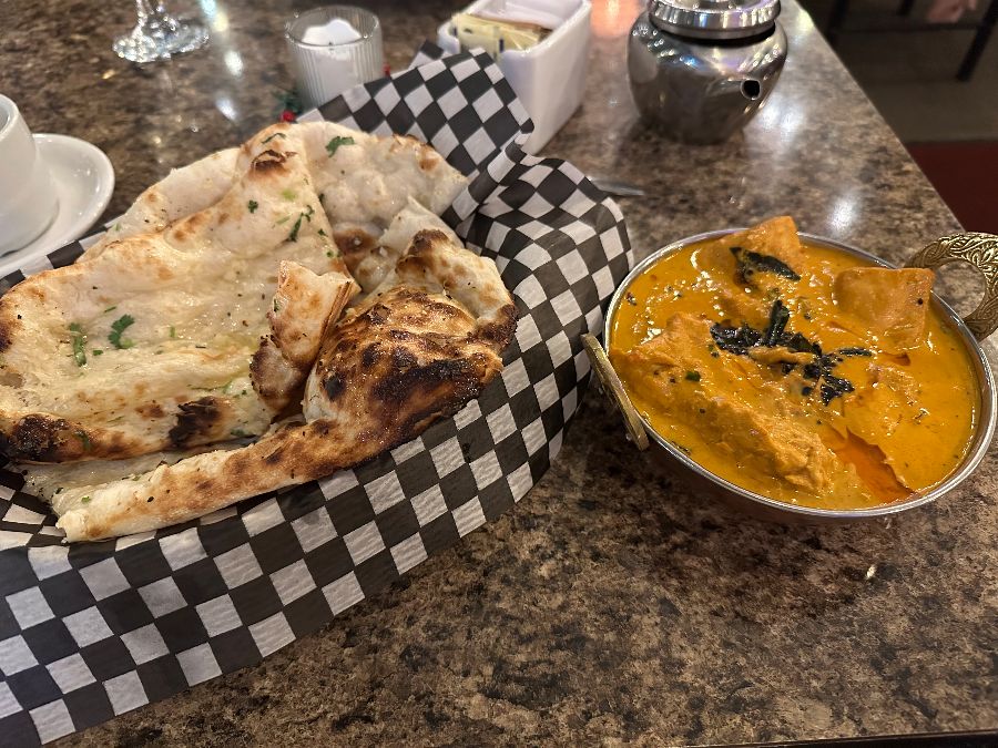 그리고 인도 요리에서 빼놓을 수 없는 난(Naan)의 퀄리티 또한 일품입니다. 갈릭 난은 부드럽고 폭신하며 먹음직스럽게 잘 구워져 나왔고, 마늘과 버터의 양이 딱 적당하여 질리지 않고 계속 손이 갑니다. 갓 구워 따뜻한 난을 찢어 진한 커리에 듬뿍 찍어 먹는 순간은 그야말로 황홀경입니다. 식탁 한편에 놓인 쌀밥과 커리, 그리고 노릇하게 구워진 난이 만들어내는 완벽한 조화는 한 끼 식사 이상의 경험을 선사합니다.
