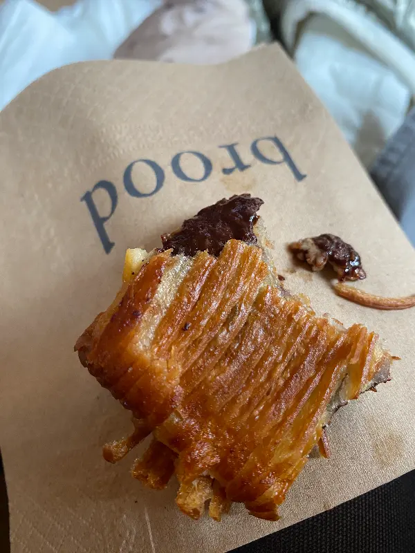 BROOD의 페이스트리는 한 입 베어 무는 순간, 왜 이곳이 브뤼셀 최고의 빵집으로 불리는지 알 수 있었다. 겹겹이 쌓인 퍼프 페이스트리는 입안에서 사르르 녹아내리며 진한 버터 향을 퍼뜨렸다. 마치 구름을 먹는 듯 가볍고 섬세한 식감은 잊을 수 없는 경험이었다.