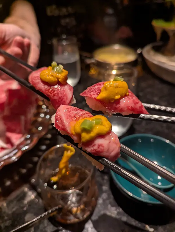 마블링이 예술적인 소고기는 입 안에서 사르르 녹는 듯한 황홀한 경험을 선사합니다.