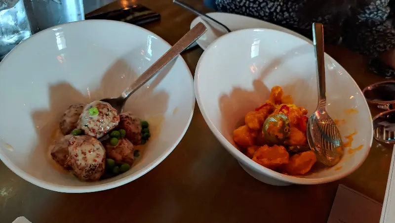 가장 먼저 맛본 메뉴는 킬러 쉬림프와 포크밸리 타코였습니다. 킬러 쉬림프는 이름처럼 강렬한 맛을 자랑했습니다. 톡톡 터지는 새우의 식감과 매콤하면서도 달콤한 소스가 환상적인 조화를 이루었습니다. 멈출 수 없는 중독적인 맛에 순식간에 접시를 비워냈습니다.