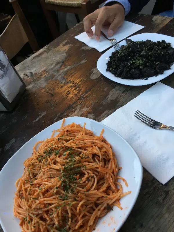 색다른 경험을 선사하는 먹물 파스타. 독특한 비주얼과 풍부한 맛이 인상적입니다.