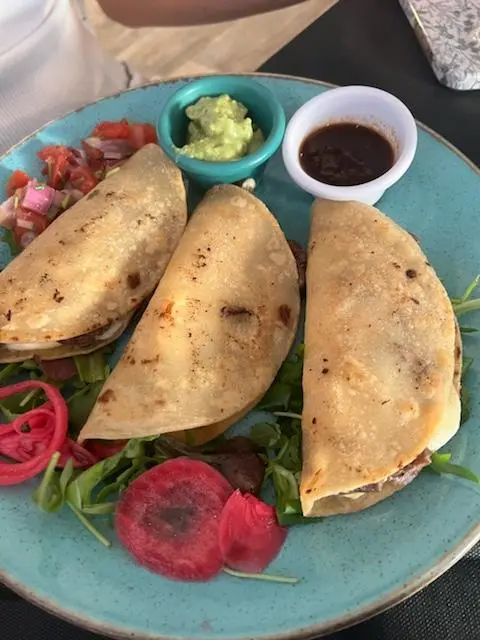칸티니타는 멕시코 현지의 맛을 그대로 재현한 요리로 유명합니다. 메뉴를 펼쳐보니 타코, 퀘사디아, 나초 등 다양한 멕시코 요리가 눈길을 사로잡았습니다. 고민 끝에 아사다 타코, 쉬림프 타코, 초리조 나초, 퀘사디아를 주문했습니다. 주문 후 얼마 지나지 않아 테이블 가득 푸짐한 요리가 차려졌습니다.
