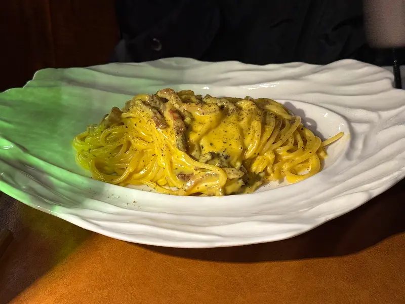 오늘의 파스타로 추천받은 트러플 파스타는 입 안 가득 퍼지는 트러플 향이 일품이었습니다. 면의 삶기도 완벽했고, 소스와의 조화도 훌륭했습니다. 마치 미슐랭 레스토랑에서 맛보는 듯한 고급스러운 풍미에 감탄했습니다. 까르보나라는 이번 여행에서 세 번째로 먹는 메뉴였는데, 이곳의 까르보나라는 단연 최고였습니다. 느끼함은 전혀 없고, 깊고 진한 풍미가 입안을 가득 채웠습니다.