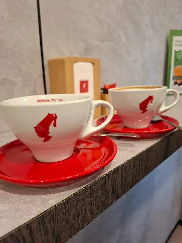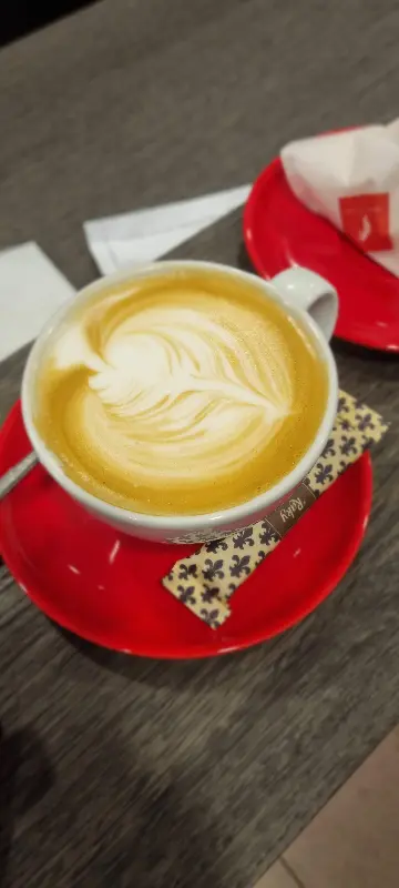 실제로 카페에 들어서자마자 따뜻한 커피 향과 함께 편안한 분위기가 느껴졌습니다. 붉은색 쟁반 위에 놓인 하얀 커피잔은 마치 예술 작품처럼 아름다웠고, 부드러운 우유 거품 위에 새겨진 섬세한 라떼 아트는 마시는 즐거움을 더했습니다. 카페 안에 울려 퍼지는 잔잔한 음악소리 또한 여행의 피로를 잊게 해주는 듯했습니다.
