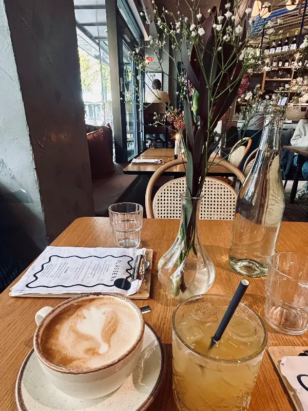 예약을 마치고 레스토랑에 도착했을 때, 실내는 이미 사람들로 가득했습니다. 다행히 화창한 날씨 덕분에 야외 테이블에 자리를 잡을 수 있었죠. 테이블에 앉자마자 따스한 햇살이 쏟아졌고, 코끝을 간지럽히는 커피 향은 기대감을 한껏 끌어올렸습니다. 야외 테이블에는 히터가 설치되어 있어 쌀쌀한 날씨에도 따뜻하게 브런치를 즐길 수 있다는 점이 매력적입니다.