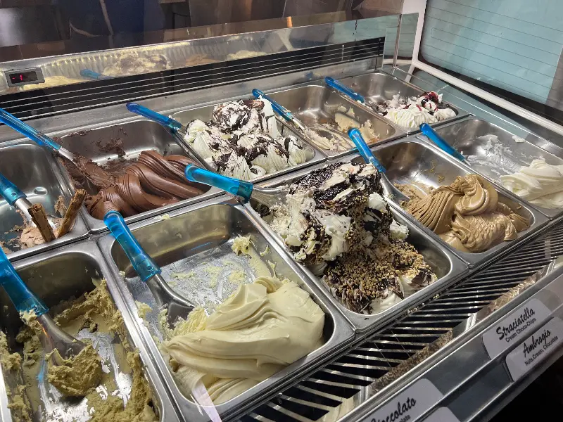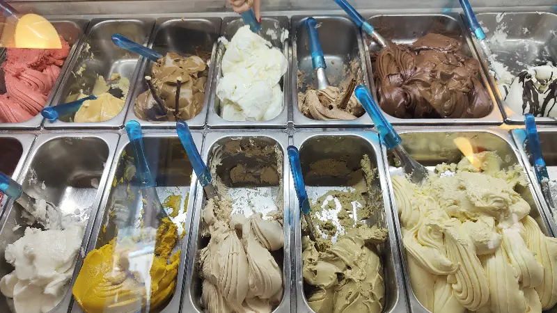 다양한 맛의 젤라또가 보기 좋게 진열되어 있어, 어떤 맛을 고를지 고민하는 즐거움을 선사합니다.