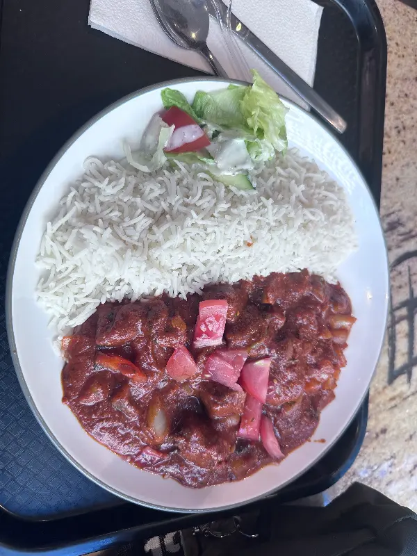 매콤한 치킨 마살라와 밥, 그리고 상큼한 샐러드의 조합은 최고의 선택이었다.