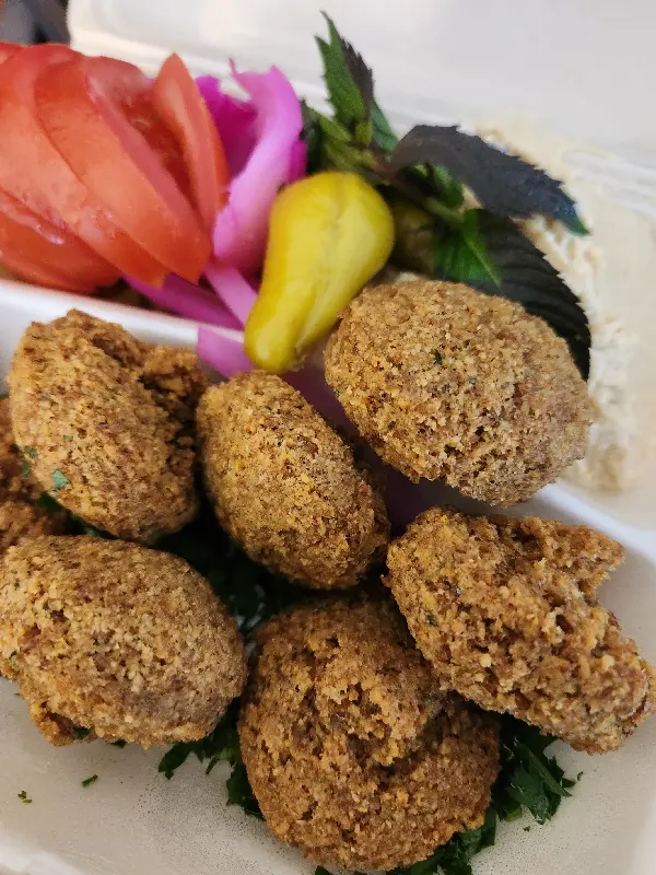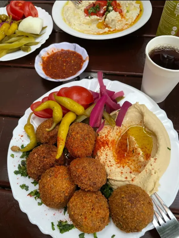 사진 속 팔라펠은 겉은 바삭하고 속은 촉촉한 완벽한 조화를 이룹니다. 곁들여진 야채들은 신선함을 더하고, 후무스는 부드러운 풍미를 더합니다. 한 입 베어 물면 입안 가득 퍼지는 풍성한 맛은 행복감을 선사합니다. 이처럼 아잠 레스토랑의 음식은 맛뿐만 아니라 시각적인 즐거움까지 선사합니다.