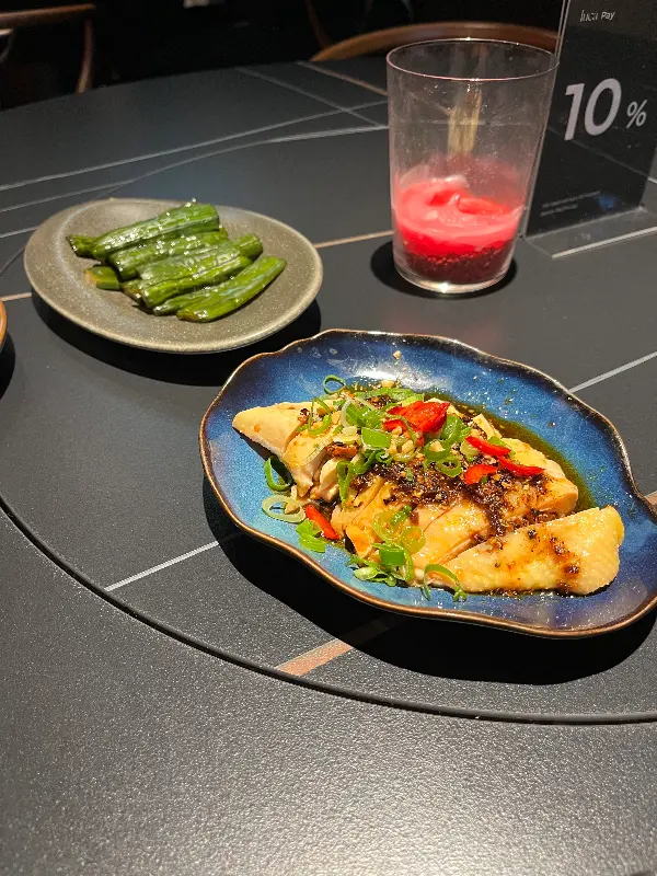 샤오룽바오의 감동이 채 가시기도 전에 하이난 라이스 + 오리가 나왔다. 윤기가 흐르는 밥과 촉촉한 오리고기의 조화가 먹음직스러웠다. 밥알 하나하나에 코팅된 듯한 윤기는 시각적으로도 훌륭했고, 밥에서 느껴지는 은은한 향은 식욕을 자극했다.