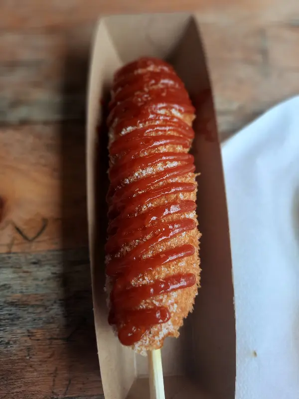 다른 방문객들의 리뷰를 살펴보니, 라면땅 핫도그와 감자 핫도그도 인기 메뉴인 듯했다. 바삭한 라면땅이 핫도그 겉면에 붙어있는 라면땅 핫도그는, 씹는 재미를 더하고 고소한 풍미를 선사한다. 반면, 큼직한 감자가 핫도그 겉면에 촘촘히 박혀있는 감자 핫도그는, 포슬포슬한 식감과 담백한 맛이 일품이다. 취향에 따라 라면땅 핫도그 또는 감자 핫도그를 선택하여 즐길 수 있다는 점이 도그몽의 매력이다.