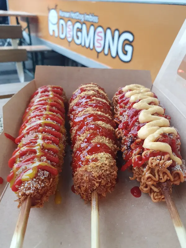어느 화창한 오후, 베를린의 활기 넘치는 노이쾰른(Neukölln) 지역을 거닐다 문득 어린 시절 추억을 떠올리게 하는 간식을 향한 강렬한 갈망이 느껴졌다. 바로 한국식 핫도그! S반 노이쾰른 역 근처, 카우플란트(Kaufland) 앞에 자리 잡은 작은 가게 “도그몽(DOGMOMG)”은 나의 레이더망에 포착되었다. 밝은 햇살 아래, 오렌지색 간판에 적힌 앙증맞은 강아지 캐릭터가 나를 반겼다.