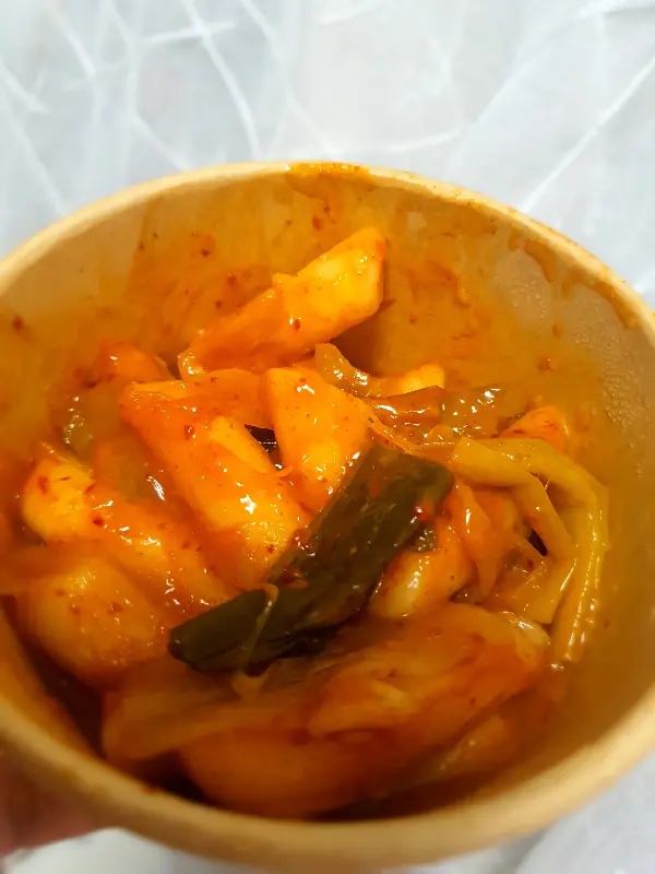 핫도그를 다 먹어갈 때쯤, 떡볶이를 개시했다는 문구가 눈에 들어왔다. 핫도그 맛집에서 떡볶이는 어떤 맛일까? 하는 궁금증에 떡볶이도 주문해 보았다. 기대 없이 떡볶이를 한 입 먹는 순간, 떡에 양념이 쏙 배어있는 깊은 맛에 깜짝 놀랐다. 매콤하면서도 달콤한 떡볶이 양념은 묘한 중독성을 지니고 있었다. 핫도그와 떡볶이를 함께 먹으니, 느끼함은 사라지고 환상적인 조합을 이루었다.