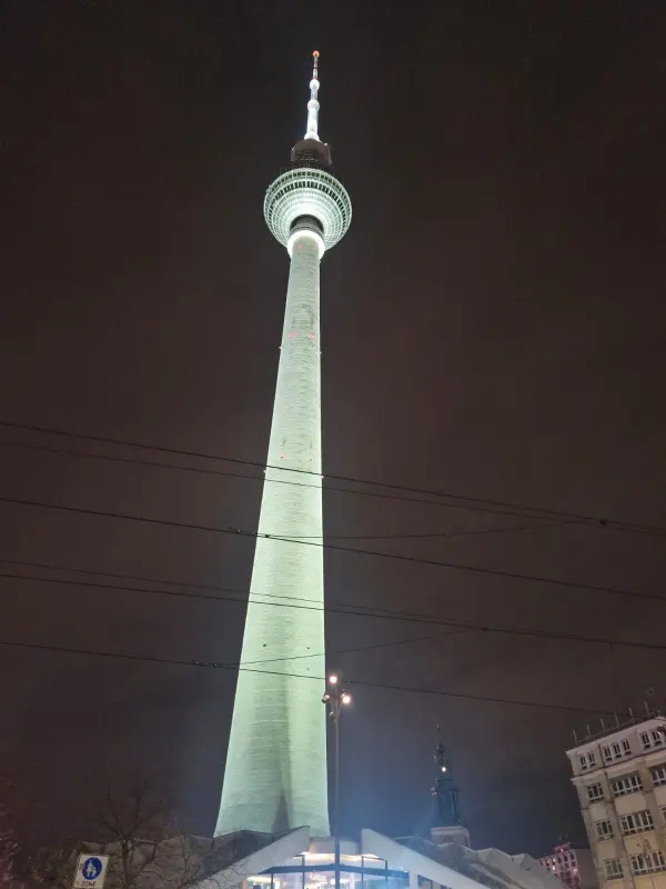 밤하늘을 밝히는 베를린 TV 타워의 웅장한 야경. 그 꼭대기에 스피어 레스토랑이 자리하고 있다.