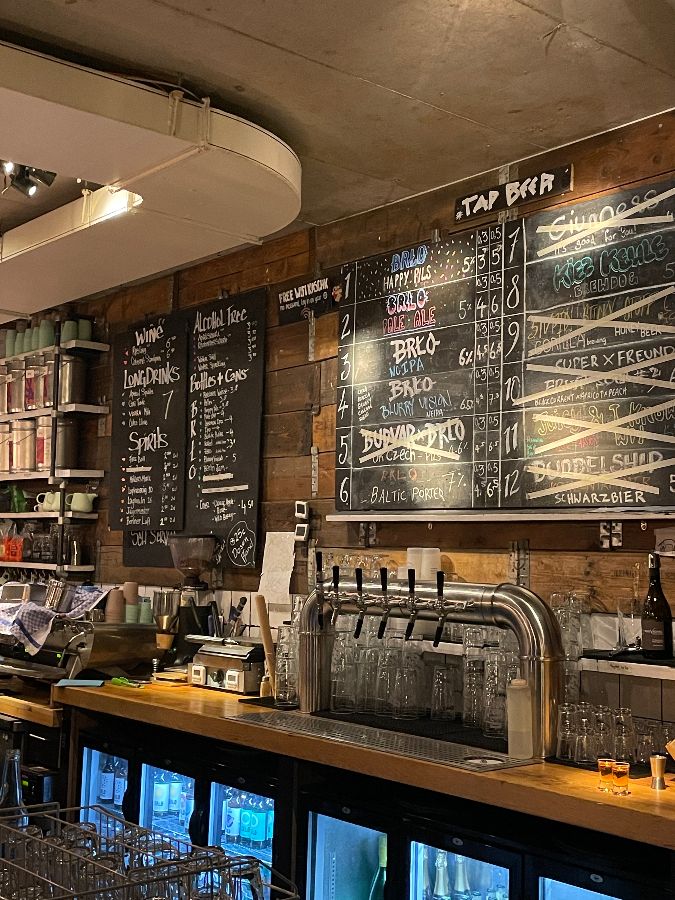 BRLO 브루하우스에 들어서면 가장 먼저 시선을 사로잡는 것은 바로 바 위에 즐비하게 놓인 탭들과 그 뒤로 보이는 거대한 칠판에 적힌 맥주 리스트입니다. 이곳은 BRLO 맥주를 드래프트로 맛볼 수 있는 특별한 장소로, 맥주 애호가들에게는 더할 나위 없는 천국과도 같습니다. 칠판 가득 적힌 다양한 종류의 맥주들은 각자의 개성 넘치는 이름과 도수를 뽐내며 방문객의 선택을 기다립니다.