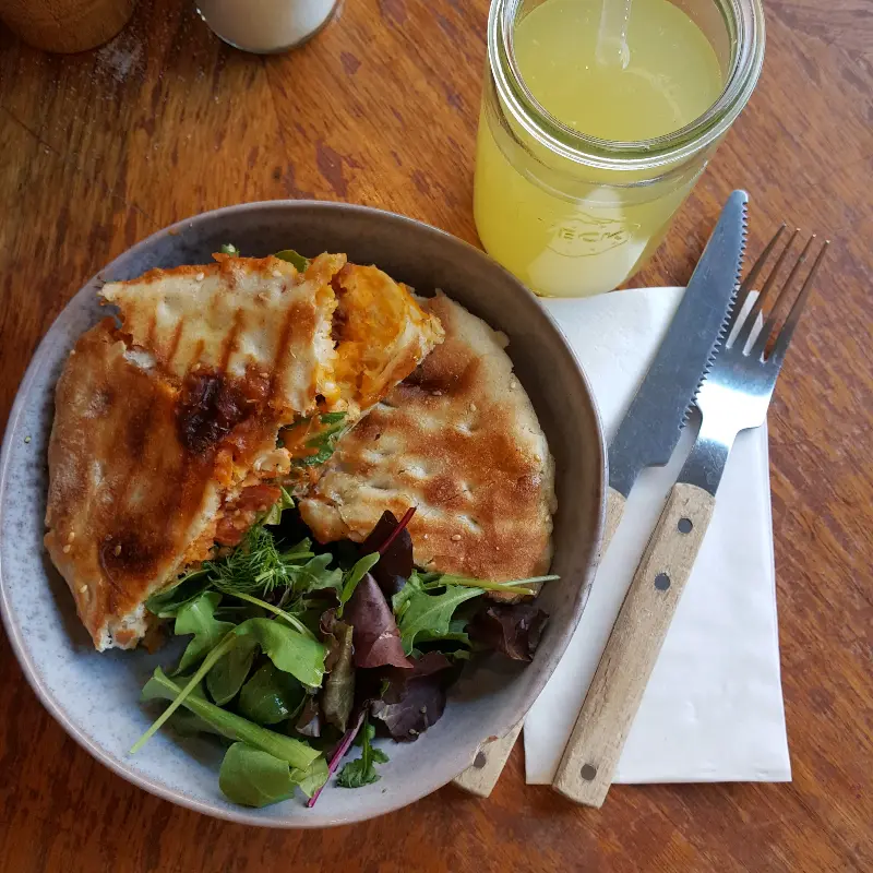 샌드위치 역시 신선한 재료 본연의 맛을 살린 건강한 맛이었습니다. 6유로라는 저렴한 가격에 든든하게 배를 채울 수 있다는 점도 매력적입니다. 함께 주문한 홈메이드 레몬에이드는 레몬을 통째로 넣은 듯, 강렬한 신맛이 인상적이었습니다. 단맛을 선호하는 분들에게는 다소 강하게 느껴질 수 있지만, 저는 오히려 그 신선함에 매료되었습니다.