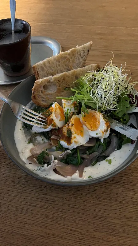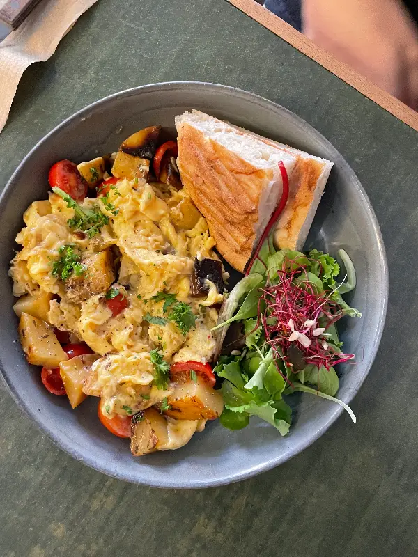 함께 간 친구는 샥슈카를 주문했는데, 샥슈카를 즐겨 먹지 않는 친구도 Factory Girl의 샥슈카는 정말 맛있다며 극찬했습니다. 담백하면서도 깊은 풍미가 느껴지는 샥슈카는 Factory Girl에서 꼭 맛봐야 할 메뉴 중 하나입니다. 이미지 2를 보면, 샥슈카는 토마토 소스 베이스에 계란과 채소를 넣어 만든 중동 및 북아프리카 지역의 전통 음식입니다. Factory Girl에서는 샥슈카 위에 신선한 허브를 듬뿍 올려 향긋함을 더했습니다. 빵을 찍어 먹으면 더욱 맛있게 즐길 수 있습니다.