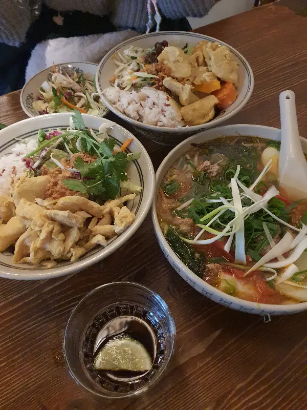 메뉴판을 펼쳐보니, 그 다양성에 놀라움을 금치 못했다. 쌀국수, 볶음 국수, 덮밥 등 아시아 각국의 요리를 맛볼 수 있는 것은 물론, 채식주의자를 위한 메뉴도 풍성하게 준비되어 있었다. 마치 미식 축제에 온 듯한 기분이었다. 비건 옵션까지 준비되어 있다는 점이 인상적이었다. 결정 장애가 있는 나에게는 행복한 고민의 시간이었다.