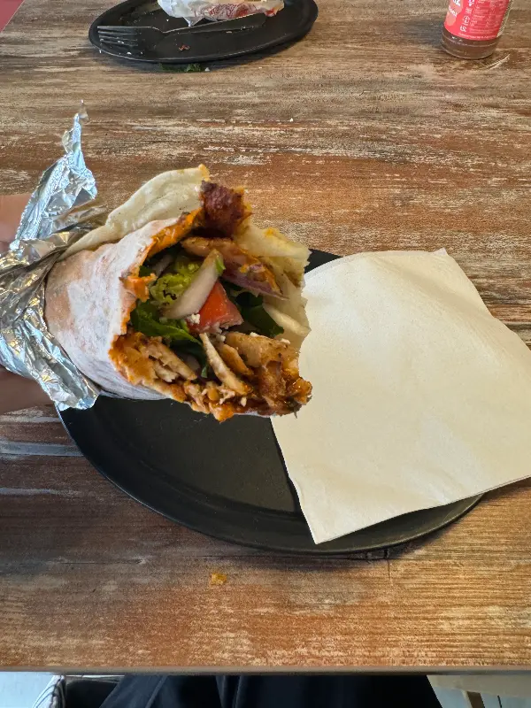케밥을 받아 들고 포장지를 벗기는 순간, 감탄사가 절로 나왔다. 빵 안에는 신선한 채소와 육즙이 풍부한 고기가 가득 차 있었다. 이미지2에서 볼 수 있듯이, 은박지에 감싸인 케밥은 그 묵직함만으로도 만족감을 주었다.