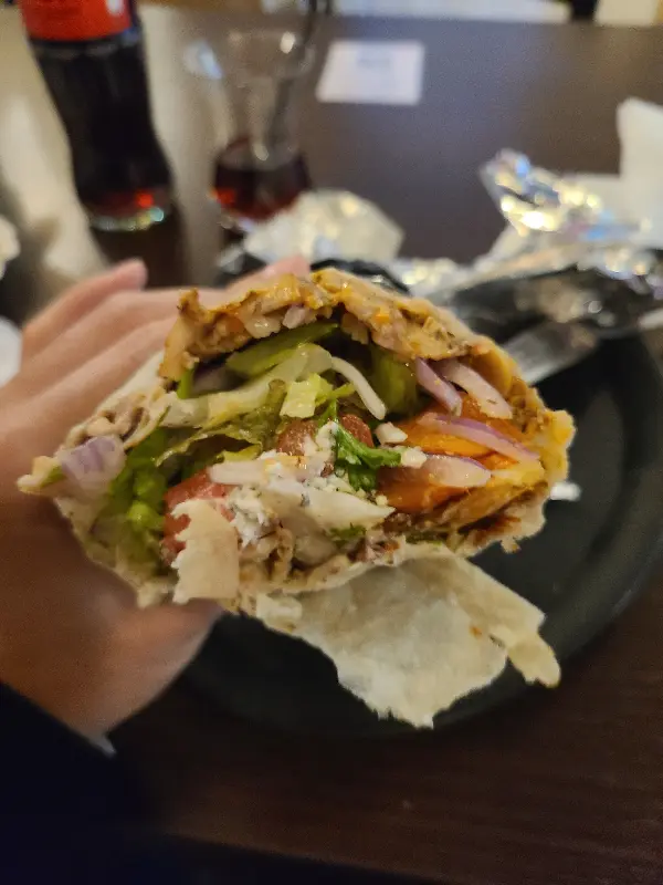 한 입 베어 무는 순간, 왜 이곳이 그토록 인기가 있는지 알 수 있었다. 겉은 바삭하고 속은 촉촉한 빵, 신선하고 아삭한 채소, 완벽하게 양념되어 육즙이 풍부한 고기, 그리고 자그로스만의 특별한 소스가 환상적인 조화를 이루었다. 특히 마요네즈 특유의 느끼함이 전혀 느껴지지 않는 소스는, 케밥의 풍미를 한층 더 끌어올렸다.