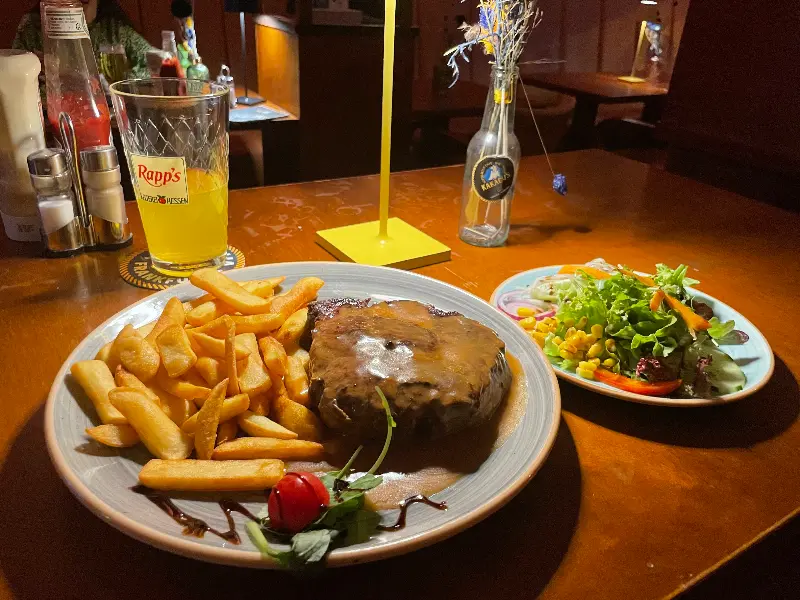 Rapp’s는 완벽한 맛집은 아니었지만, 분명 매력적인 공간이었다. 슈니첼은 다소 아쉬웠지만, 독일 생맥주의 풍미와 친절한 서비스, 활기찬 분위기는 충분히 만족스러웠다. 특히 한국 김치볶음 맛이 나는 양배추 볶음은 잊을 수 없는 맛이었다. Rapp’s는 베를린 여행 중 우연히 발견한 보석 같은 곳이었다. 다음에는 꼭 스테이크를 맛보러 다시 방문하고 싶다.
