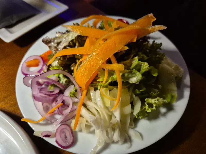 슈니첼의 아쉬움을 달래준 것은 함께 나온 양배추 볶음이었다. 한 입 맛보는 순간, 익숙하면서도 묘한 맛에 깜짝 놀랐다. 마치 한국 김치볶음을 연상시키는 맛이었던 것! 오랫동안 여행하면서 한식이 그리웠던 나에게는 뜻밖의 위로가 되었다. 짭짤하면서도 매콤한 양배추 볶음은 슈니첼의 느끼함을 잡아주었고, 잃었던 입맛을 되살려주었다.