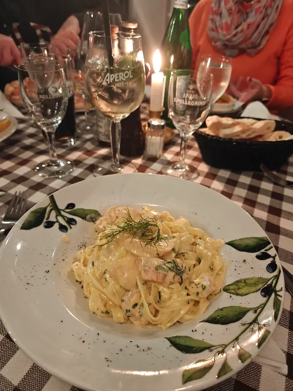 티라미수를 제외한 모든 것이 만족스러웠습니다. 푸짐한 양, 훌륭한 맛, 친절한 서비스, 그리고 활기찬 분위기까지. Sale e Pepe는 소박하지만, 진정한 행복을 느낄 수 있는 곳이었습니다. 식사를 마치고 나서는 직원분들이 서비스로 샷을 제공해 주셨습니다. 따뜻한 환대에 감동받아 다음 방문을 기약하며 가게를 나섰습니다.
