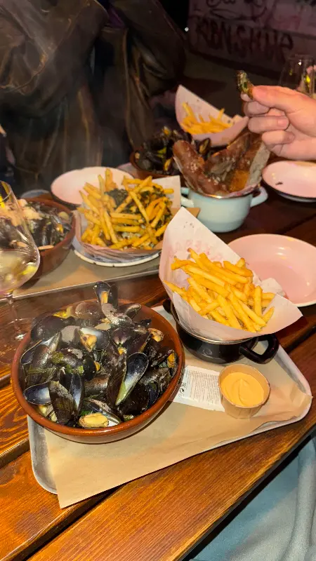 무셸바의 메뉴는 홍합과 감자튀김이라는 단순한 조합에 집중합니다. 하지만 그 맛은 결코 평범하지 않습니다. 다양한 스타일로 조리된 홍합 요리는 입안 가득 풍성한 맛을 선사합니다. 특히 프로방스 스타일로 조리된 홍합은 소박하면서도 깊은 풍미를 자랑합니다. 신선한 홍합과 허브, 향신료의 조화는 마치 프랑스 남부의 한적한 해변가 마을에 와 있는 듯한 착각을 불러일으킵니다.