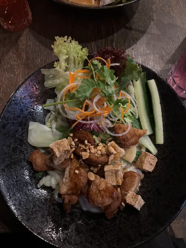 비건 “오리”는 겉은 바삭하고 속은 촉촉한, 그야말로 겉바속촉의 정석을 보여줍니다. 달콤하면서도 짭짤한 소스가 곁들여져 있어, 남녀노소 누구나 좋아할 만한 맛입니다. 큼지막하게 썰린 오이와 다채로운 채소 고명은 풍성한 식감을 선사합니다.