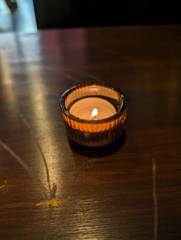 테이블 위 작은 촛불이 아늑한 분위기를 더해줍니다.