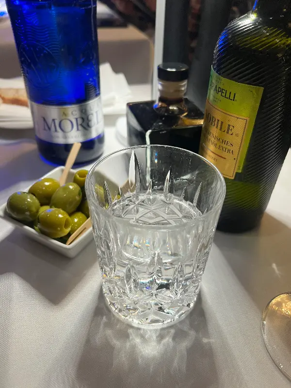 투명한 잔에 담긴 물과 올리브, 그리고 고급스러운 병에 담긴 식초는 단순한 식전 준비가 아닌, 고객을 위한 세심한 배려를 보여주는 듯했다. 이런 작은 부분에서부터 이 레스토랑의 특별함이 느껴졌다.