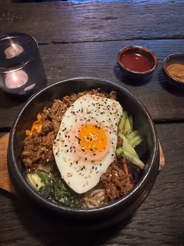 젓가락으로 쓱쓱 비비는 순간, 돌솥의 열기가 재료들을 더욱 맛있게 만들어줍니다. 한 입 맛보는 순간, 입안 가득 퍼지는 풍성한 식감과 다채로운 맛은 한국에서 먹던 비빔밥과 거의 흡사하다는 리뷰처럼, 고향의 맛을 느끼게 해 줍니다. 특히 Beef 비빔밥에 듬뿍 들어간 고기와 함께 제공되는 고추장은, 그 맛을 더욱 깊고 풍부하게 만들어줍니다. 런던에서 맛보았던 아쉬운 비빔밥의 기억을 말끔히 씻어주는 맛입니다.