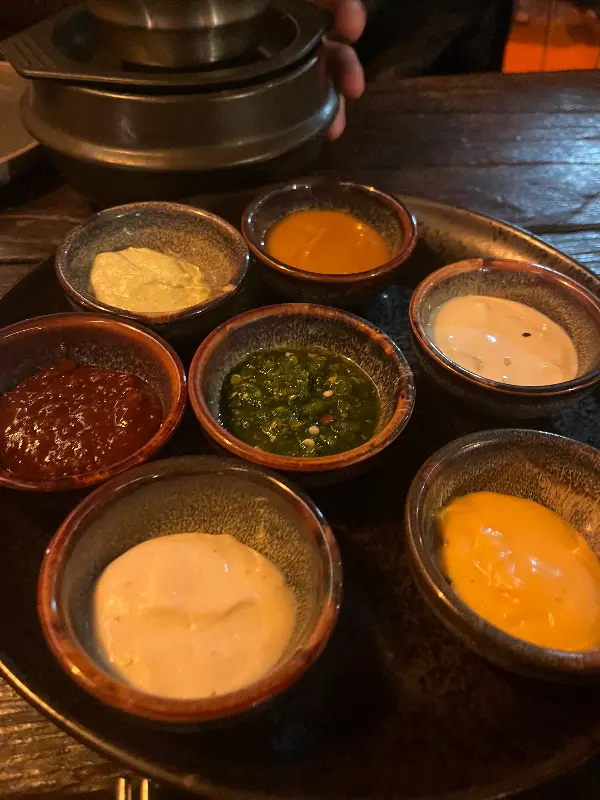 다채로운 소스, 취향에 따라 골라 찍어먹는 재미가 있는 바비큐.