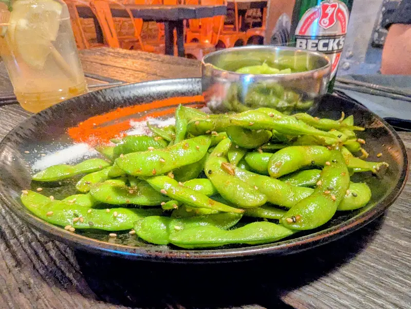 큼지막한 바비큐 스타일 에다마메 역시 훌륭한 선택입니다. 푸짐한 양은 여럿이 함께 나눠 먹기에 충분하며, 맥주와 함께 곁들이면 더할 나위 없이 좋습니다.