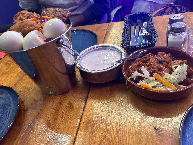 주문 후 음식이 나오기까지 시간이 꽤 걸렸지만, 그 기다림이 전혀 지루하지 않았다. 오히려 친구들과 이런저런 이야기를 나누며 기대감을 높일 수 있었다. 드디어 기다리고 기다리던 음식이 하나 둘 테이블 위에 놓이기 시작했다. 가장 먼저 눈에 띈 것은 ‘치킨 65’. 겉은 바삭하고 속은 촉촉한 닭고기에 매콤한 향신료가 더해져, 입에 넣는 순간 감탄사가 절로 나왔다. 함께 나온 소스에 찍어 먹으니, 매운맛이 중화되면서 더욱 풍부한 맛을 느낄 수 있었다.