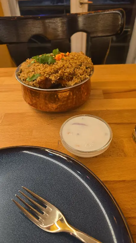 다음으로 맛본 것은 ‘치킨 비리야니’. 뚜껑을 여는 순간, 향긋한 향신료 향이 코를 자극했다. 밥알 하나하나에 양념이 고루 배어 있었고, 닭고기는 어찌나 부드러운지 입에서 살살 녹았다. 향신료의 배합이 정말 완벽했다. 함께 나온 라임 조각을 살짝 뿌려 먹으니, 상큼함이 더해져 더욱 깊은 풍미를 느낄 수 있었다. 비리야니는 정말 잊을 수 없는 맛이었다.