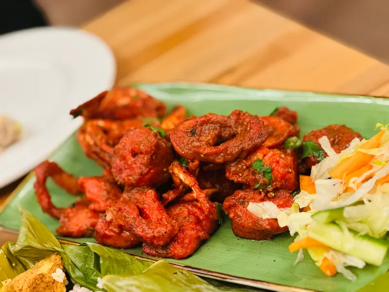겉은 바삭, 속은 촉촉한 치킨 65. 독특한 식감과 향신료의 조화가 일품이다.